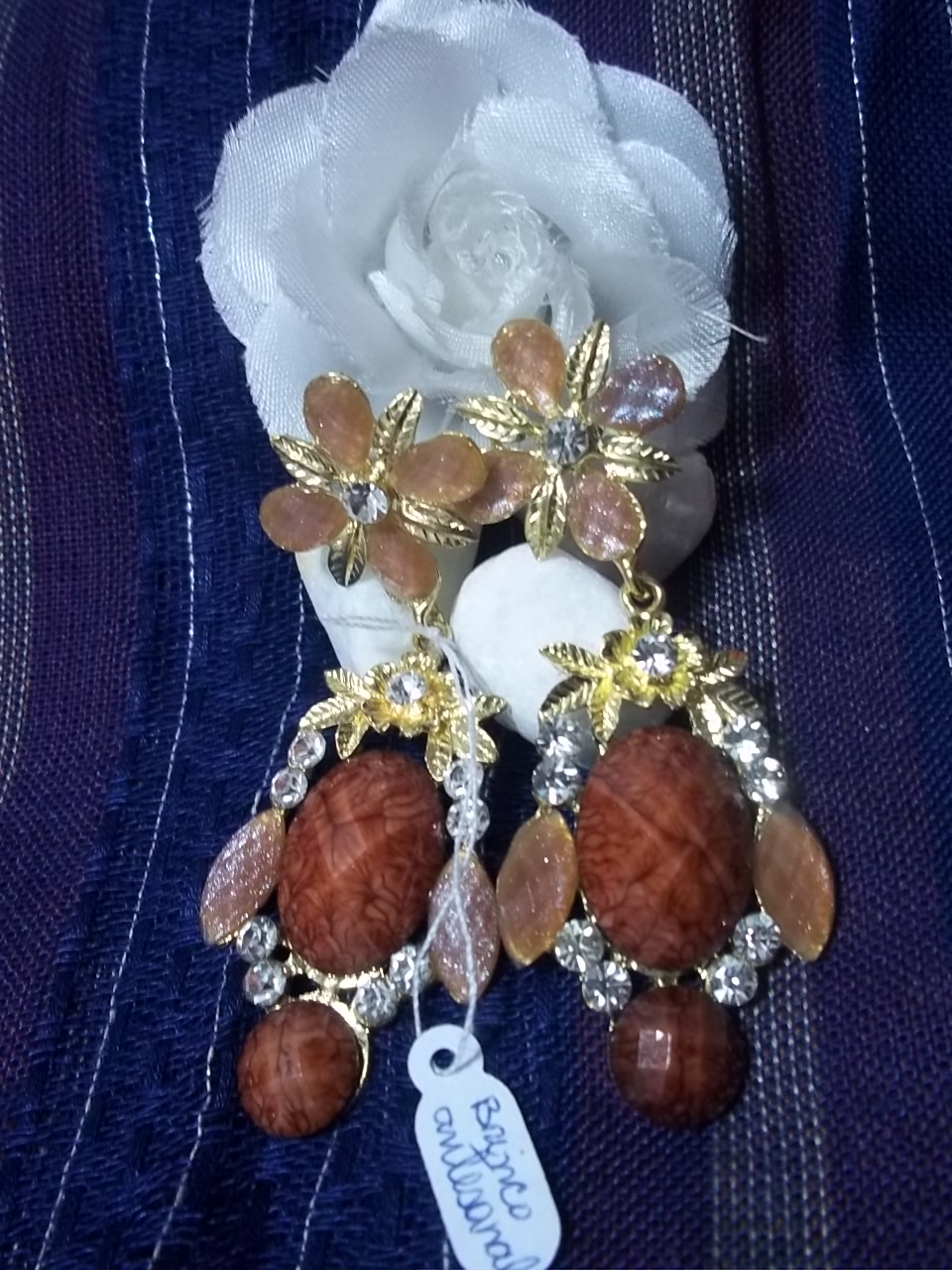 Lindo brincos artesanais, nos tons de dourado com âmbar, peça única, aqui na DasDri